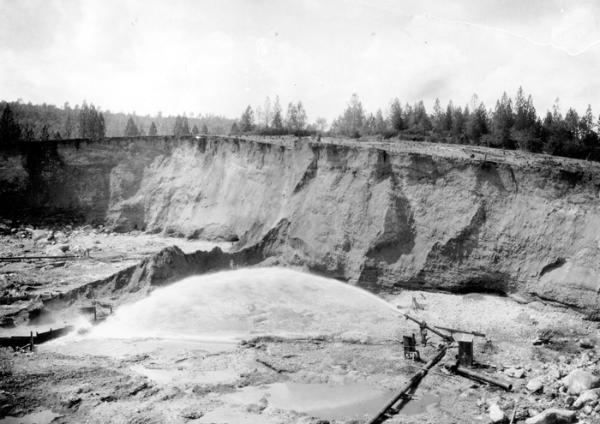 French Corral - Hydraulic sluicing in 1909 at French Corral, then known